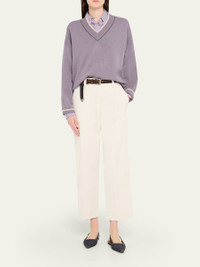 Crafted from stretch cotton, these trousers by Brunello Cucinelli are finished with leg-elongating front pintucks Mid-rise sits high on hip Slanted side pockets Cropped fit Straight legs Hidden hook/zip fly; belt loops Cotton/elastane Lining: Polyester/acetate Dry clean Made in Italy Online Inquiries: BGS21_BA4KF| Store Inquiries: #5034184