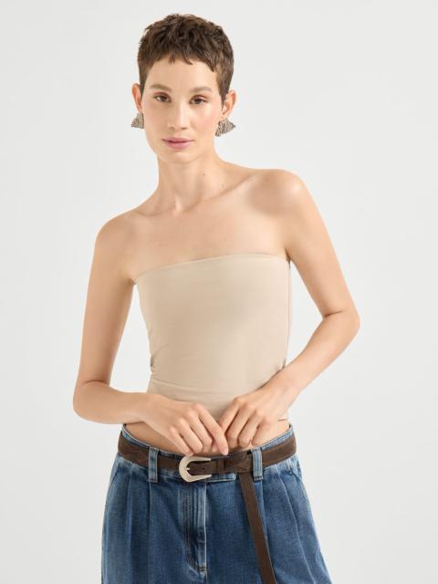 Essential style and extraordinary comfort define this stretch cotton jersey bandeau top. The garment features a slightly "cropped" fit and bare shoulders to highlight the feminine silhouette. The top can be worn as a comfortable undergarment. MATERIALS A small percentage of spandex makes the lightweight and soft cotton jersey comfortable and pleasant to wear. DETAILS Off-the-shoulder style Stretch pull-on top 93% COTTON, 7% ELASTANE