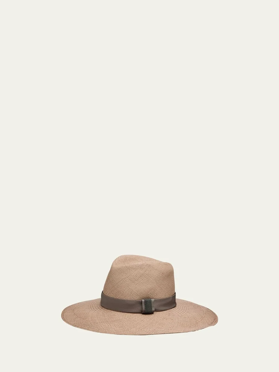 Woven from natural straw, this Brunello Cucinelli fedora hat features a decorative band enhanced with signature monili trim. Pinched crown Wide brim Straw/cotton/acetate Made in Italy