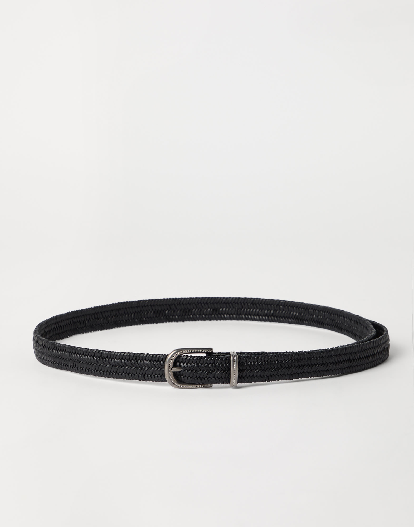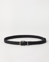 The crafting of refined woven leather enriches the contemporary style of this belt with a special three-dimensional texture. The contrasting buckle and loop give the accessory a shiny note. MATERIALS The woven design of the belt is made with refined calfskin leather, characterized by a rich, even grain. The small percentage of synthetic fiber makes the leather more elastic. DETAILS Belt height approx. 2.5 cm (0.98") All metal parts are Nickel-free 70% REAL LEATHER, 23% VISCOSE, 7% RUBBER