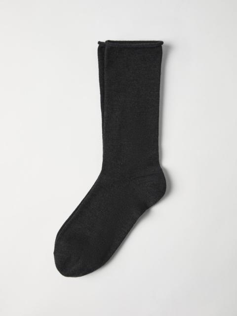 The excellence of Brunello Cucinelli materials enriches the style of these knit socks, perfect accessories to complement a look with a sophisticated note. The cozy cashmere yarn guarantees warmth and protection. MATERIALS Cashmere yarn is warm and cozy, enriched with a percentage of synthetic fiber to make wearing all day comfortable. DETAILS Plain stitch Ankle length 90% CASHMERE, 10% POLYESTER