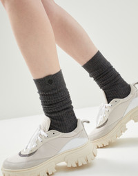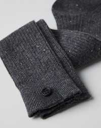 The glowing touch of Sparkling cashmere yarn and the iconic embellishment of the Brunello Cucinelli collections characterize these new cashmere socks. The lamé thread spreads delicate luminous reflections on the entire surface, while the season’s “Precious Button Tab” detail is enriched with shiny monili embroidery to accentuate the sparkling, distinctly feminine touch of these accessories. MATERIALS The soft and lightweight cashmere Sparkling yarn combines the natural fiber’s refined qualities with a lamé thread that enriches the texture with delicate reflections. DETAILS Nickel-free monili decoration Mother of pearl button closure 46% CASHMERE, 41% VISCOSE, 13% POLYESTER