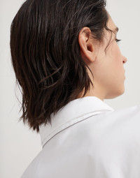 The iconic embellishment of the Brunello Cucinelli collections enriches the essential feel of this new stretch cotton poplin shirt. A fine strip of monili behind the neck provides the comfortable garment with a sparkling note. MATERIALS The stretch cotton poplin is a year-round fabric with a lightweight texture that is extremely pleasant to wear. A small percentage of spandex provides added comfort. DETAILS Concealed button closure Classic collar Button cuffs Nickel-free monili decoration 72% COTTON, 23% NYLON, 5% ELASTANE