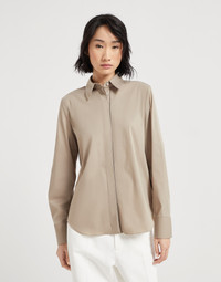 Stretch cotton poplin shirt with shiny trim
