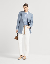 The iconic embellishment of the Brunello Cucinelli collections enriches this shirt in stretch cotton poplin, a classic fabric par excellence. A thin monili embroidery leaves a sparkling trail along the garment’s hidden closure. The fit offers comfortable proportions, flaring slightly at the bottom. MATERIALS The stretch cotton poplin is a year-round fabric with a lightweight texture that is extremely pleasant to wear. A small percentage of spandex provides added comfort. DETAILS Concealed button closure Classic collar Button cuffs Nickel-free monili decoration 72% COTTON, 23% NYLON, 5% ELASTANE