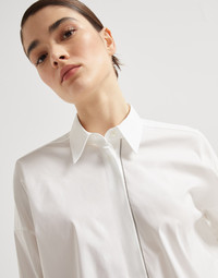 Stretch cotton poplin shirt with shiny trim