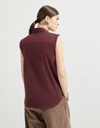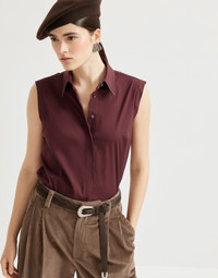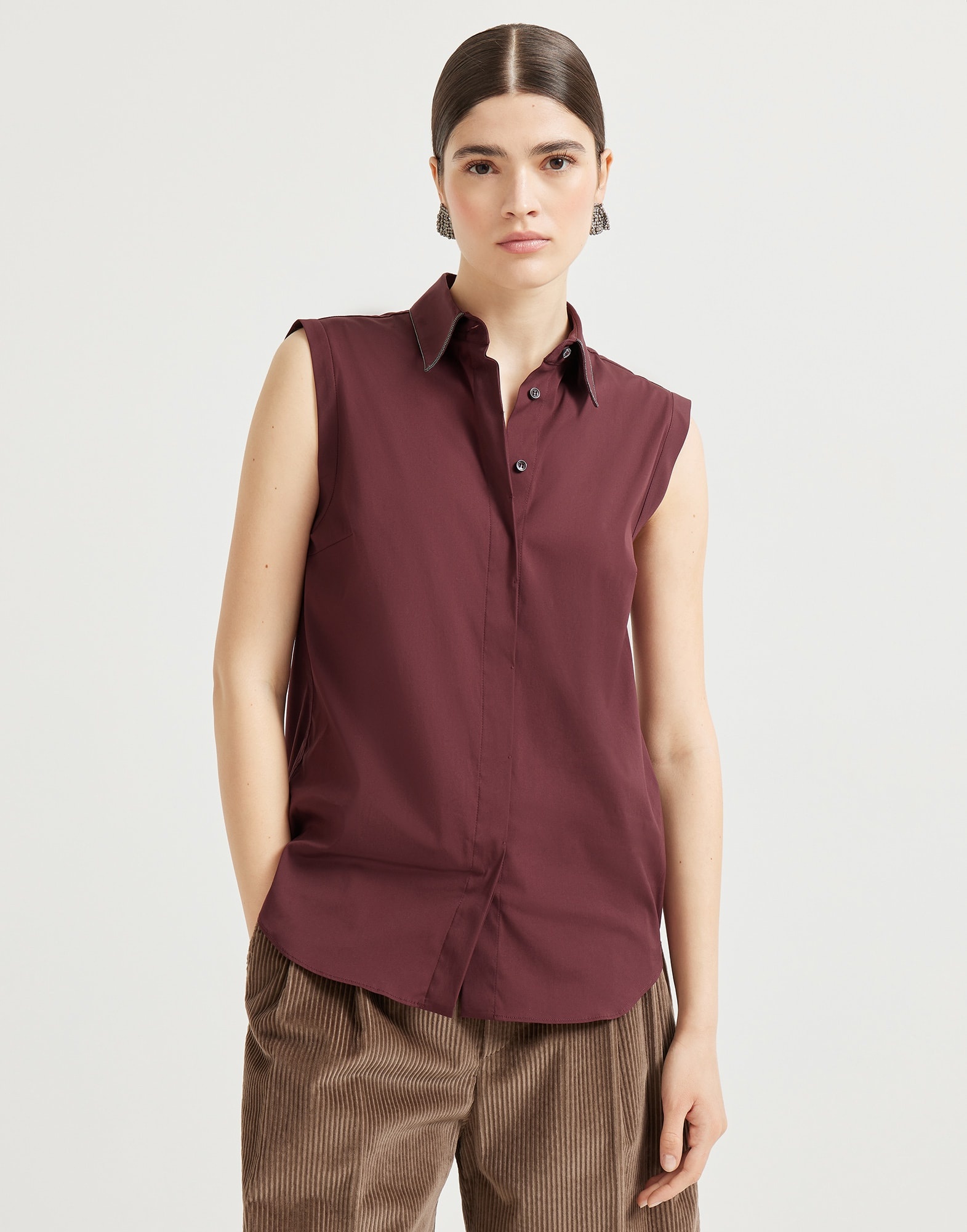 Stretch cotton poplin sleeveless shirt with shiny trim