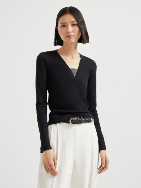 Stretch cotton ribbed jersey T-shirt with precious insert