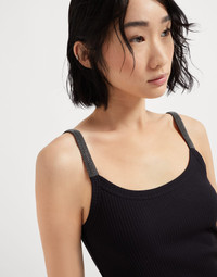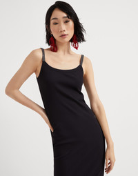 Precious details enrich the essential lines of this stretch cotton jersey Tank dress. The lightweight, casual fabric pairs perfectly with the silhouette’s feminine allure, while the texture of the classic ribbing enhances the garment’s fitted lines. The sparkling monili embroidery on the shoulder straps completes the dress with an elegant sparkle in true Brunello Cucinelli style. MATERIALS A small percentage of spandex perfects the comfort of the lightweight and soft ribbed cotton jersey. DETAILS Wide neckline Low back neckline at back Nickel-free monili decoration 96% COTTON, 4% ELASTANE