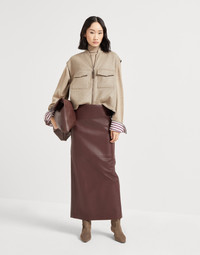 Soft nappa leather long column skirt