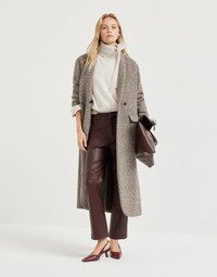 The excellence of Brunello Cucinelli materials enriches these square cigarette trousers in stretch nappa leather. The bold attitude of the soft leather perfectly complements the feminine silhouette of the garment, characterized by fitted lines in the seat that flare slightly at the bottom. The shiny monili embroidery adds a refined touch of sparkle. MATERIALS The nappa leather’s soft and smooth texture is enriched with the hide’s precious stretch-effect, a quality that helps to provide comfort when worn. DETAILS Zip closure with metal hooks and backing button Slanted front pockets Back patch pockets Unlined Nickel-free monili decoration REAL LEATHER