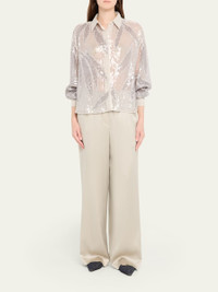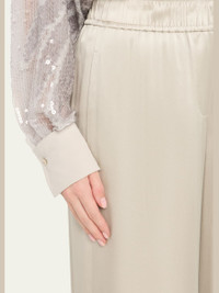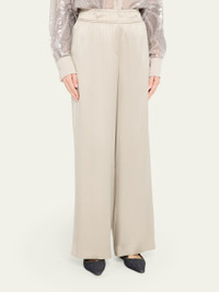 Crafted from lustrous stretch silk satin, these pants by Brunello Cucinelli offer a fluid, comfortable fit High-rise waistband Side pockets Full length Wide legs Pull-on style Silk/elastane Lining: Silk/acetate Dry clean Made in Italy Online Inquiries: BGS21_BA4KN| Store Inquiries: #5034191