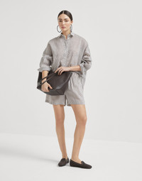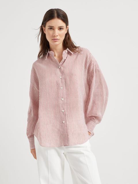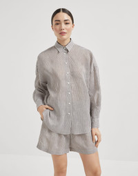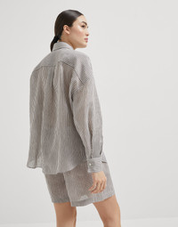 Striped linen and silk organza shirt with shiny collar detail