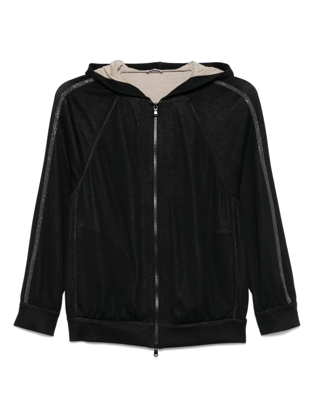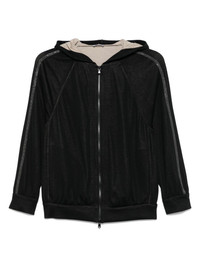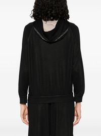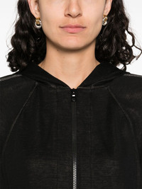 stripe-detail zip-up hoodie Highlights - Black - Front zip fastening - Classic hood - Long raglan sleeves - Ribbed cuffs and hem Made in Italy Composition Eco Brass 100%, Cotton 67%, Silk 31%, Polyamide 2% SIZE & FIT Model measurements Height 5 ft 10 in(1.79 m) Bust/Chest 33.07 in(84 cm) Hips 35.82 in(91 cm) Waist 24.01 in(61 cm) FittingInformation Designed for a relaxed fit, this piece allows for comfort and movement when worn Made from a midweight non-stretch fabric, this piece offers minimal elasticity when worn