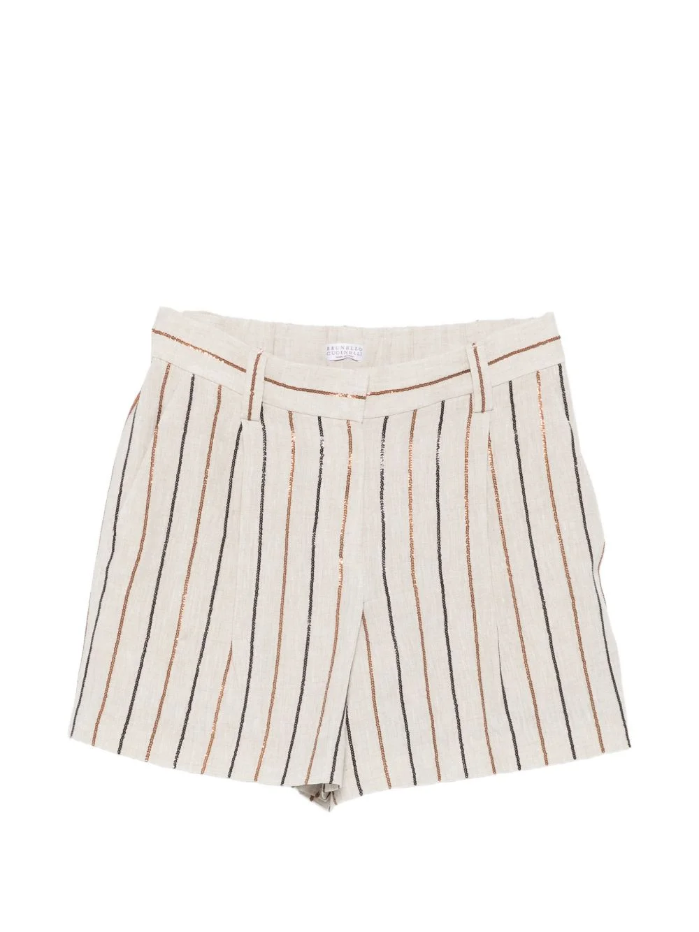 striped belt shorts Highlights - Beige - Striped - Side seam pockets - Belt loops - Pleated - This piece comes complete with a protective dust bag. Made in Italy Composition Outer: Linen/Flax 100%, Polyester 100% Lining: Acetate 74%, Silk 26% Washing instructions Dry Clean Only
