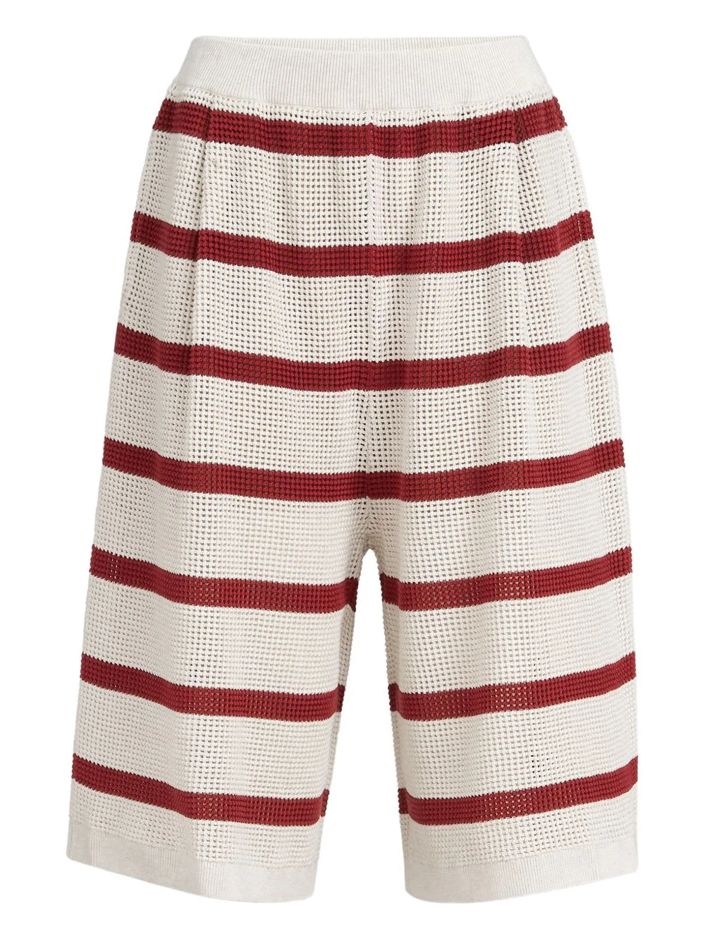 striped bermuda shorts Highlights - Burgundy and white - Striped design - Elasticated waistband - Slip pockets Made in Italy Composition Cotton 100% Washing instructions Hand Wash