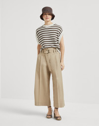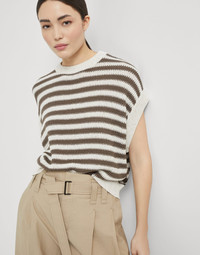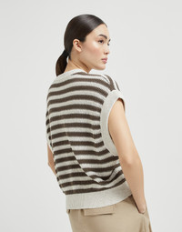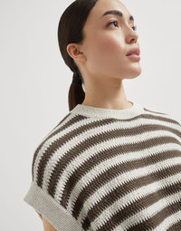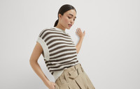 The beauty and comfort of knitwear gives life to this striped dazzling cotton knit T-shirt. The casual attitude of English rib knitting perfectly complements the relaxed silhouette, while small sequins illuminate the garment’s entire surface with delicate sparkling reflections. The soft proportions feature dropped shoulders and wide sleeves for an extremely comfortable fit. MATERIALS The manufacturing of lightweight Diamond yarn combines the fresh, natural touch of pure cotton with small paillettes incorporated into the yarn, spreading delicate sparkling reflections on the surface of the piece. DETAILS Crew-neck Drop shoulder Wide sleeve Plain stitch 96% COTTON, 4% POLYESTER