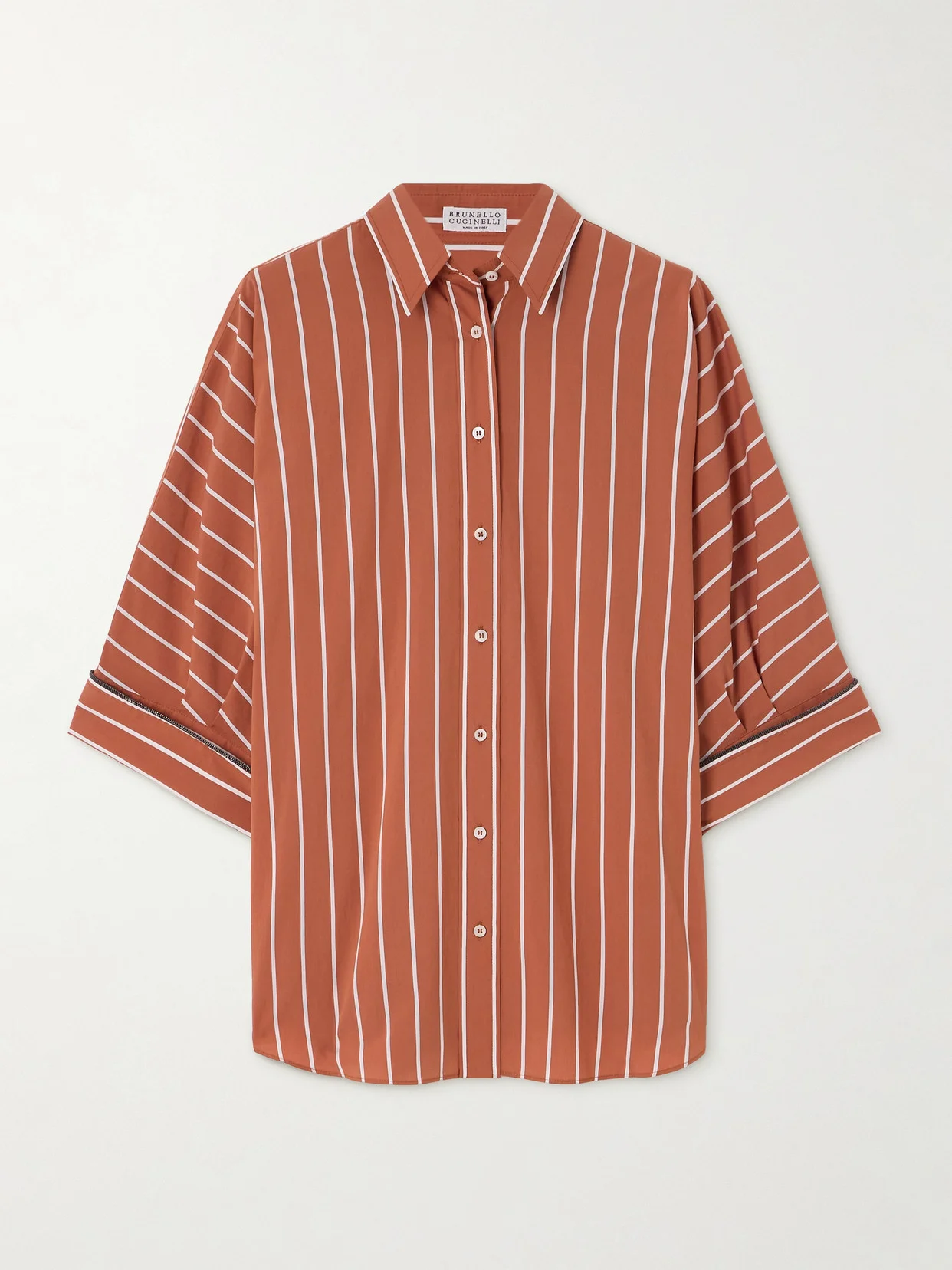Bead-embellished Striped Cotton-blend Poplin Shirt