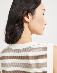 Sparkling striped cotton knit top with monili