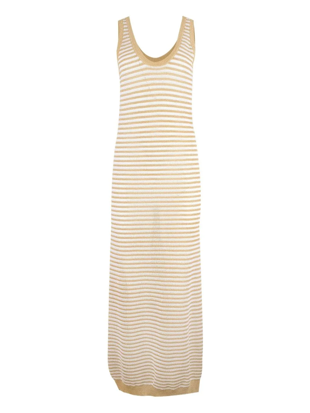 striped midi dress Highlights - Camel white - Striped pattern - Sleeveless - Scoop neck Made in Italy Composition Linen/Flax 45%, Polyester 37%, Metallic Fibre 10%, Polyamide 8% Washing instructions Read Manufacturer Guidelines