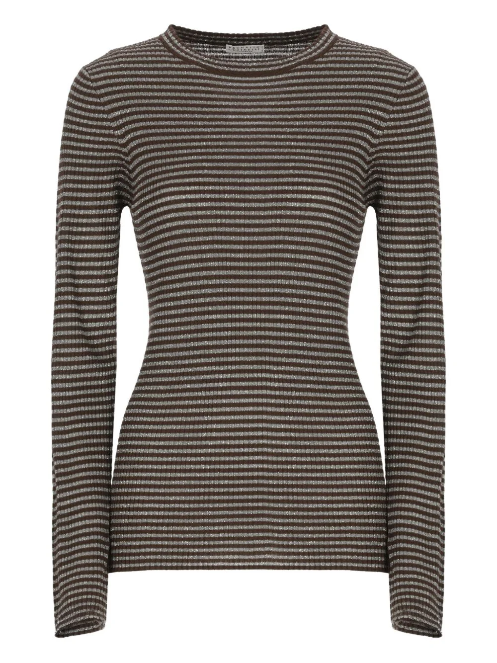 striped knitwear Highlights - Brown/grey - Wool - Striped - Round neck - Long sleeves - Ribbed knit Made in Italy Composition Virgin Wool 90%, Cashmere 10% Washing instructions Read Manufacturer Guidelines