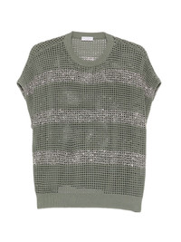 striped open knit top Highlights - Green - Horizontal stripe - Open knit - Round neck - Short sleeves - Cotton Made in Italy Composition Cotton 100%