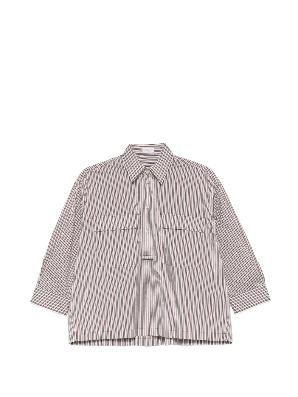 striped pocket blouse Highlights - Bordeaux/multicolour - Striped - Two front pockets - Button fastening - Short sleeves - Straight hem Made in Italy Composition Cotton 80%, Silk 20% Washing instructions Dry Clean Only