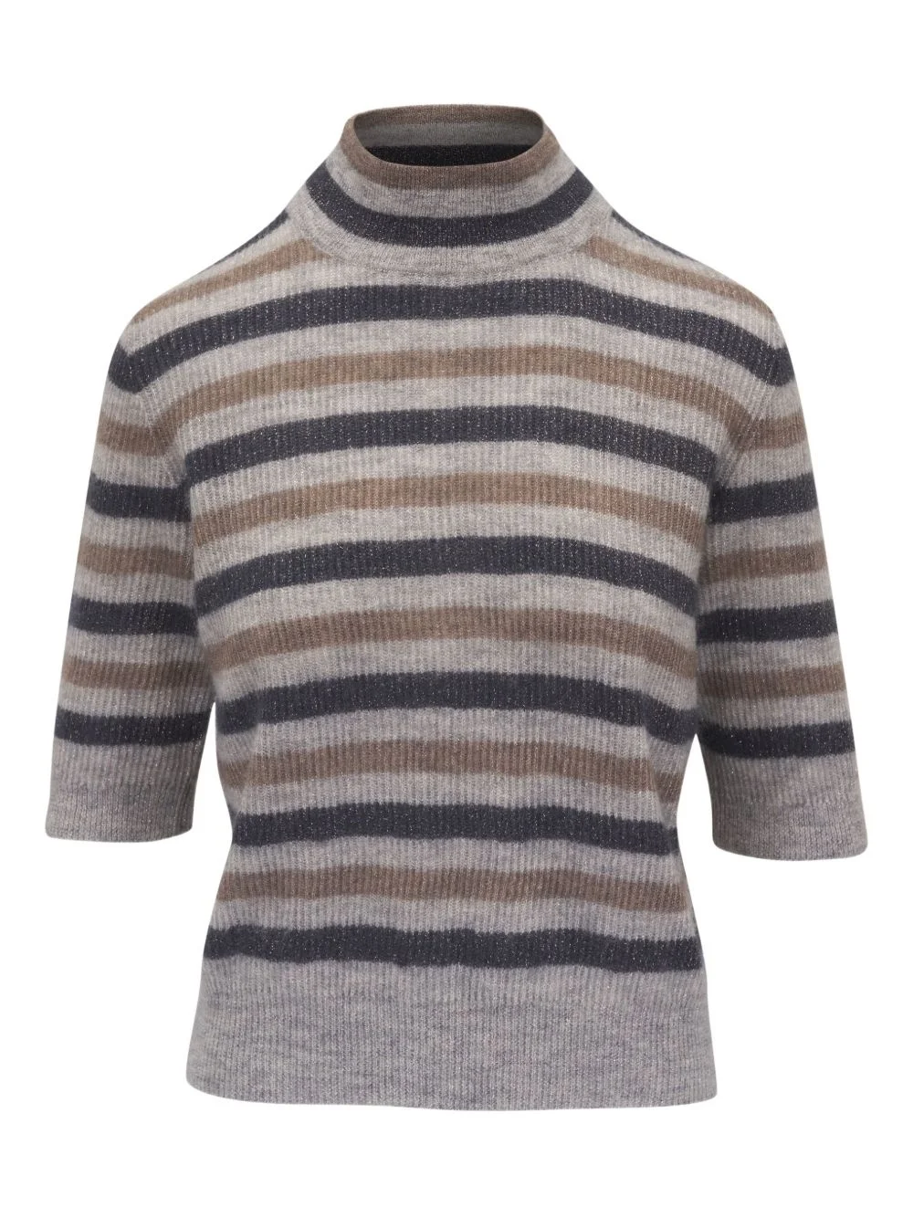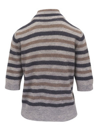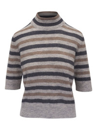 striped sweater Highlights - Grey - Mock neck - Three-quarter length sleeves - Ribbed cuffs and hem Made in United States Composition Mohair 42%, Polyamide 38%, Wool 12%, Metallic Fibre 8%