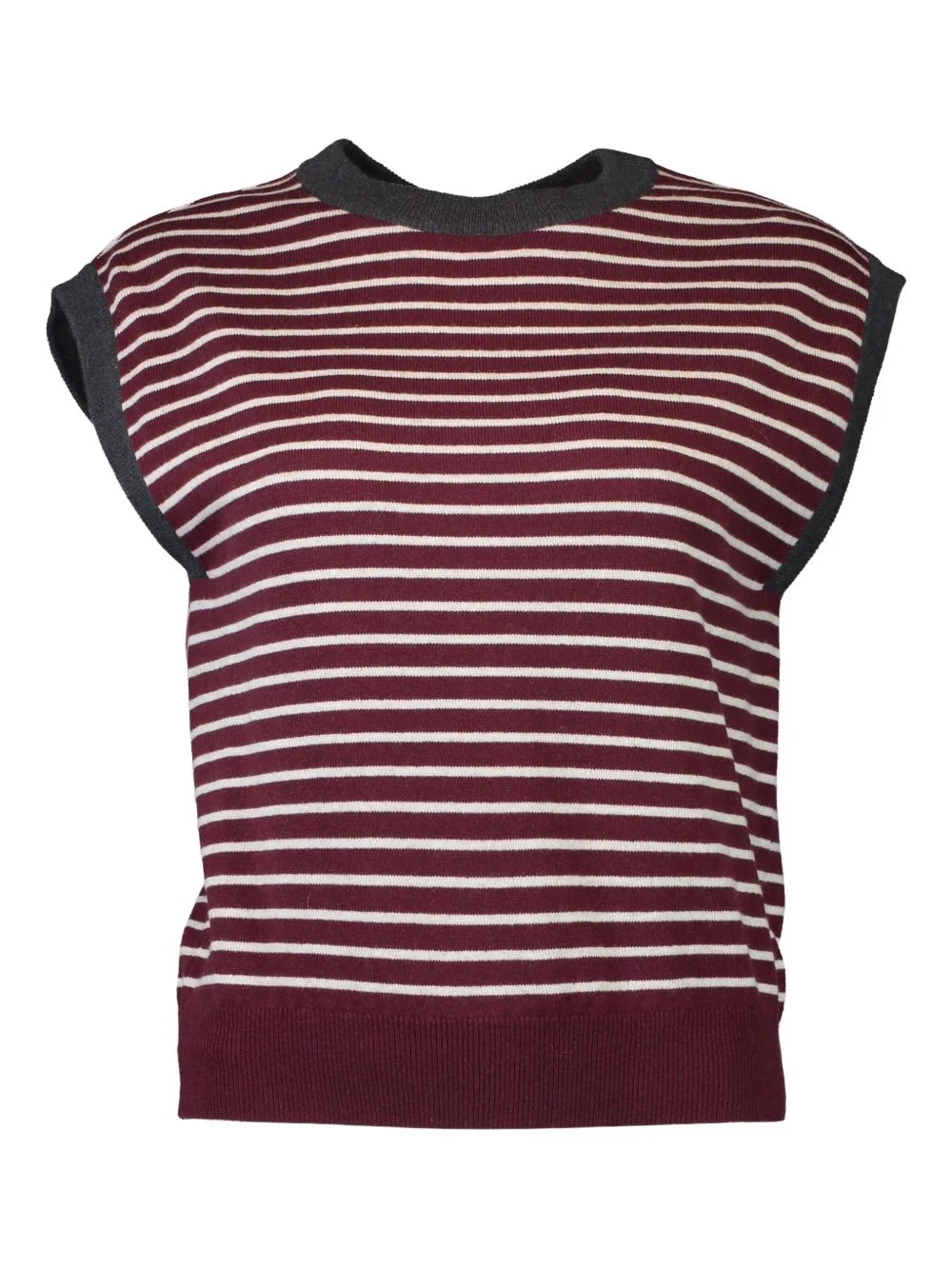 striped knitted top Highlights - Burgundy - Horizontal stripe - Round neck - Sleeveless - Ribbed hem Made in Italy Composition Cashmere 100% Washing instructions Read Manufacturer Guidelines