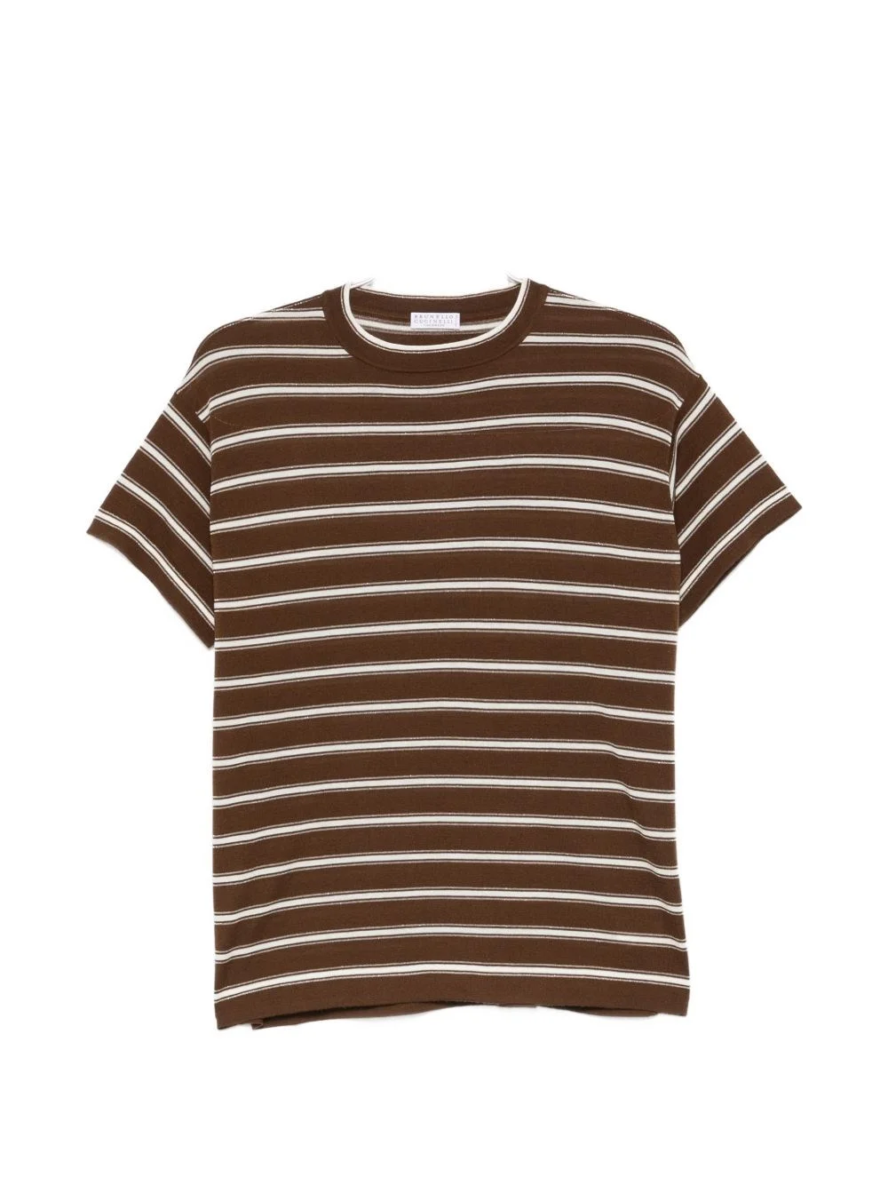 Striped wool sweater [ SKU: 10192678568 ] The Striped wool sweater from Brunello Cucinelli redefines luxury in the T-shirts & Polos category. This lightweight knit features a crew neck and short sleeves adorned with sparkling details, perfect for elevating your casual ensemble. Ideal for sophisticated day outings or relaxed evenings, this piece pairs beautifully with tailored trousers or chic denim. Embrace effortless elegance with this exquisite addition to your wardrobe, suitable for both refined gatherings and leisurely moments. Composition 90%Viscose 10% Viscose Reference M14854100CTX08 Made in Italy
