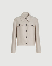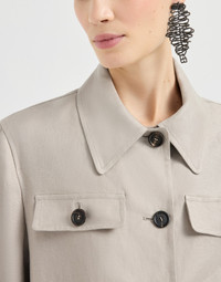 An essential, contemporary elegance defines the style of this pure linen diagonal jacket. The feminine silhouette stands out for its straight, clean, slightly fitted lines, completed with a classic collar and flap pockets that evoke an informal, utility wear feel. The iconic monili detail adds a delicate sparkle in true Brunello Cucinelli style. MATERIALS Linen diagonal combines the freshness and elegance of the natural fiber with a twill-weave, enriching the fabric with a refined diagonal texture. This combination gives the material strength, breathability and an attractive irregular hand. DETAILS Horn button closure Shirt-style collar Cuffs have four horn buttons Upper pockets with flap and button Vertical hand pockets Silk-blend crepe lining Nickel-free monili decoration 100% LINEN