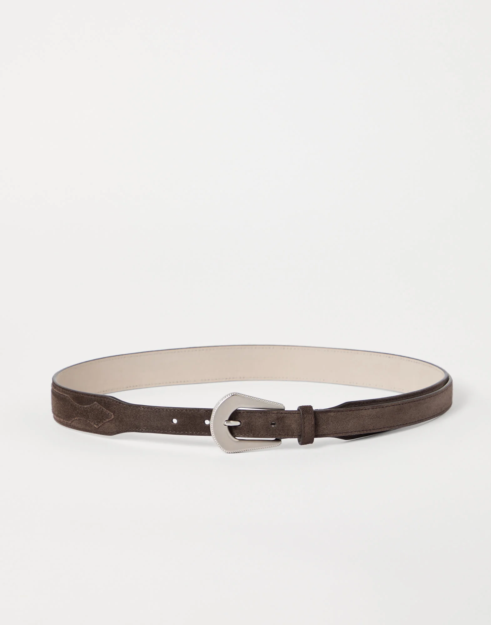 This suede belt is an accessory with a refined, sophisticated feel, perfect for completing different looks and outfits. The soft suede leather contrasts harmoniously with the essential, contemporary character of the metal buckle. MATERIALS Sueded calfskin displays the characteristic velvety and slightly uneven texture. DETAILS Belt height approx. 3 cm All metal parts are Nickel-free REAL LEATHER
