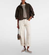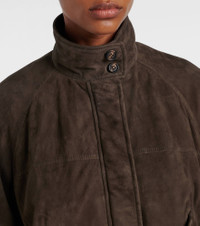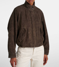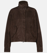 This Brunello Cucinelli bomber jacket brings a retro flair to this timeless silhouette. Cut from buttery suede, this cropped style features a high neck, concealed button closure, and flap pockets. Product Details - Care instructions: specialist clean - Made in Italy - Designer color name: Corvino - Item color: brown - Pocket lining: 74% acetate, 26% silk - Contains non-textile parts of animal origin - Closure: two-way zipped front with snap-button fastenings - Pockets: flap pockets - Cuff: buttoned - Includes: garment bag - Item number: P01054362 Size & Fit - True to size - Designed for a loose fit - Non-stretchy fabric - Falls to the hip - The model seen in the picture is 178cm-5'10" and wearing a size IT 40