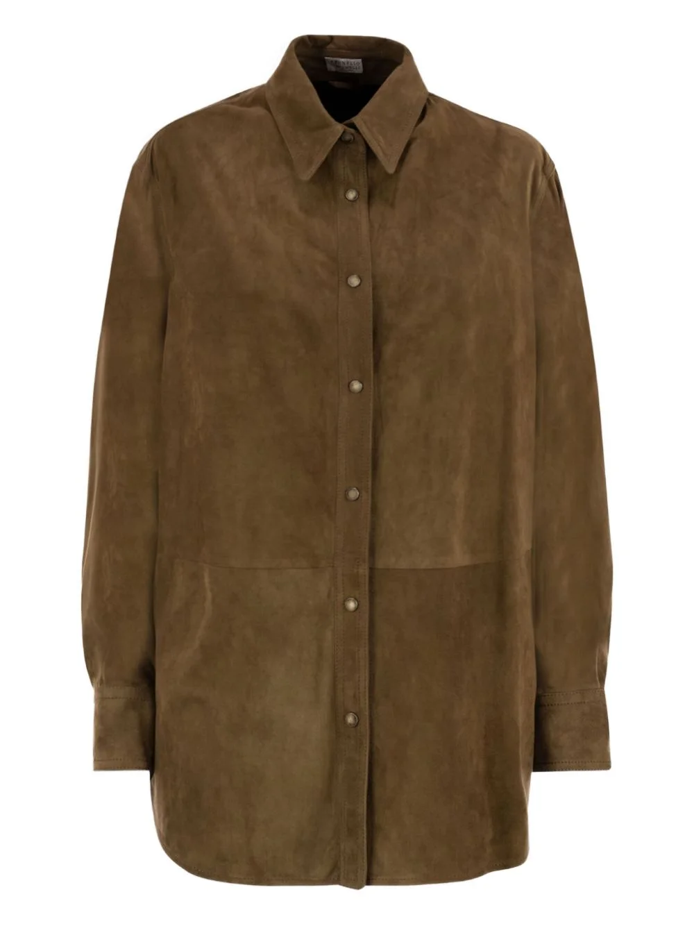 buttoned suede jacket Highlights - Brown - Suede - Button fastening - Long sleeves - Point collar Imported Composition Suede 100% Washing instructions Read Manufacturer Guidelines