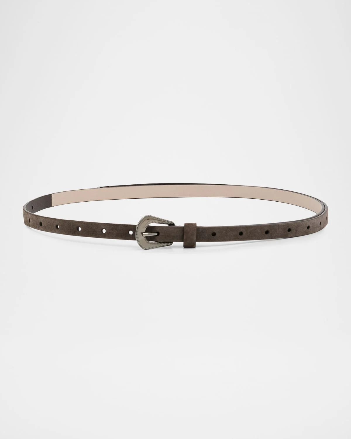 Combining craftsmanship and sophistication, this Brunello Cucinelli leather belt is finished to showcase a slightly irregular and polished carved effect. Approx. 0.39"H Adjustable fastening Buckle closure Leather Spot clean Made in the Netherlands
