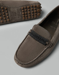 Suede driving shoes with precious braided detail