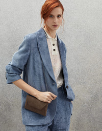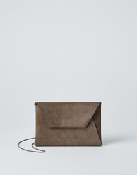 An elegant and extremely feminine aesthetic meets Brunello Cucinelli’s refined materials and sparkling details in this suede Envelope bag. The envelope-inspired silhouette is crafted in extremely soft, velvety suede that brings out the season’s color. The thin shoulder strap is made of fine rows of shiny monili for a sophisticated contrast. MATERIALS The refined suede is a compact leather with a soft, velvety texture. A leather lining completes the look of the bag. DETAILS Magnetic snap closure Shoulder strap Leather lining Nickel-free monili decoration Accessory is approx. 19 cm long, 12 cm high and 1,5 cm wide REAL LEATHER