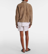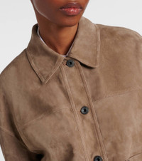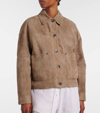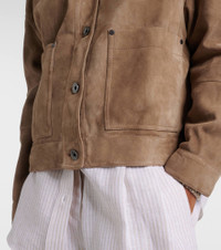 Brunello Cucinelli's designs are created in Solomeo, a medieval hamlet whose art and traditions are woven into the house's every fiber. Crafted in Italy from suede, this field jacket features a buttoned front and two practical patch pockets. Product Details - Material: 100% lamb leather (suede) - Care instructions: specialist clean - Made in Italy - Designer color name: Cool Brown - Item color: brown - Pocket lining: 74% acetate, 26% silk - Details: 100% brass - Contains non-textile parts of animal origin - Includes: dust bag - Closure: buttoned front - Collar: classic (Straight point) - Pockets: patch pockets - Item number: P01054228 Size & Fit - True to size - Dropped shoulders - Designed for a loose fit - Non-stretchy fabric - Falls to the hip - The model seen in the picture is 178cm-5'10" and wearing a size IT 40