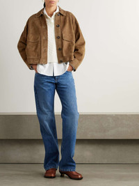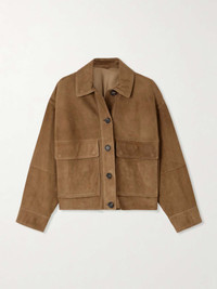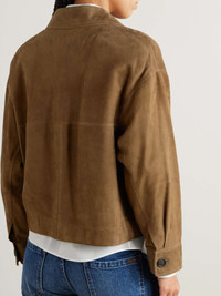 EDITORS'NOTES Brunello Cucinelli is a beacon of fine Italian craftsmanship. This jacket is designed in a minimal profile with two large flap pockets at the front. As the cut is so streamlined, the pristine suede is perfectly spotlighted. SIZE & FIT Model measurements: - Fits true to size, take your normal size - Designed for a loose fit - Supple, non-stretchy suede - Model is 177cm/ 5'10" and is wearing an IT 40 - Bust: 85cm/ 33.5" - Waist: 65cm/ 25.5" - Hip: 91cm/ 36" DETAILS & CARE - Brown suede - Button fastenings through front - 100% suede (Lamb); buttons: 100% horn (Buffalo) - Specialist clean