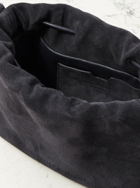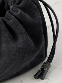 Brunello Cucinelli's bag has been made in Italy from soft suede in a slouchy silhouette. It has a leather drawstring threaded through the top that creates gentle folds and is embellished with Monili beads along the detachable chain strap. There's space inside for your phone, keys and cards. Details & Care - Navy suede (Calf) - Detachable shoulder strap - Internal card slot - Leather lining - Drawstring fastening at top - Comes with a dust bag