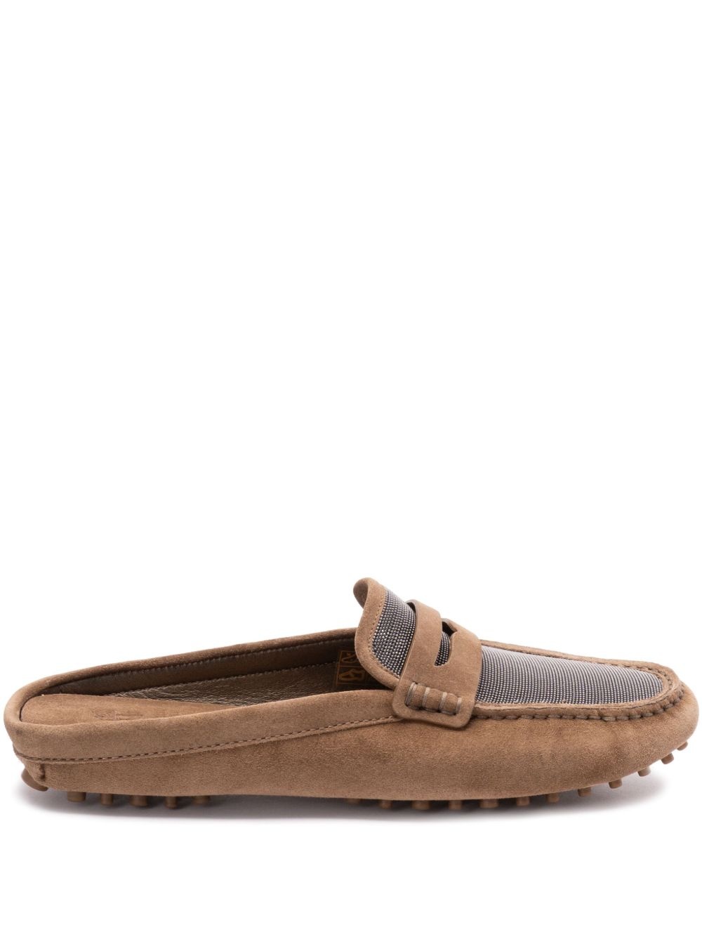 suede mules Highlights - Sand brown - Slip-on style - Penny slot - Studded sole Made in Italy Composition Outer: Brass 100%, Calf Suede 100% Lining: Calf Suede 100% Sole: Rubber 100%, Calf Suede 100%