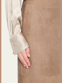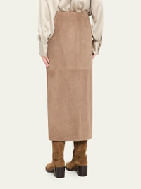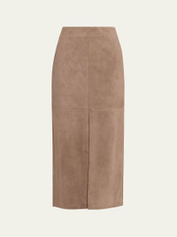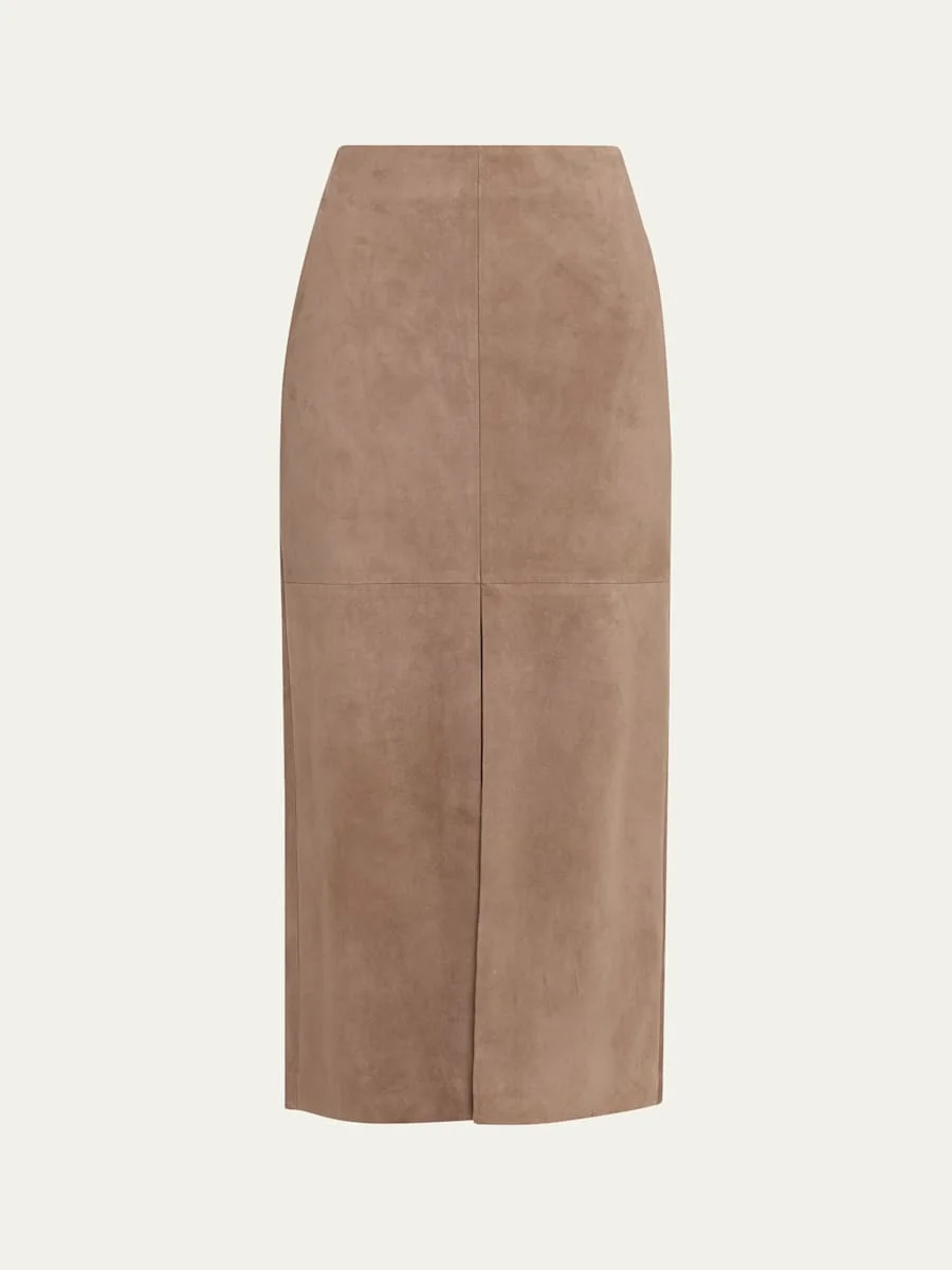 - Brunello Cucinelli skirt crafted from supple suede in a paneled construction - High waist - Center-cut front vent eases movement - Hem falls below the knee - Pencil style - Suede - Lining: Polyester/acetate - Dry clean - Made in Italy