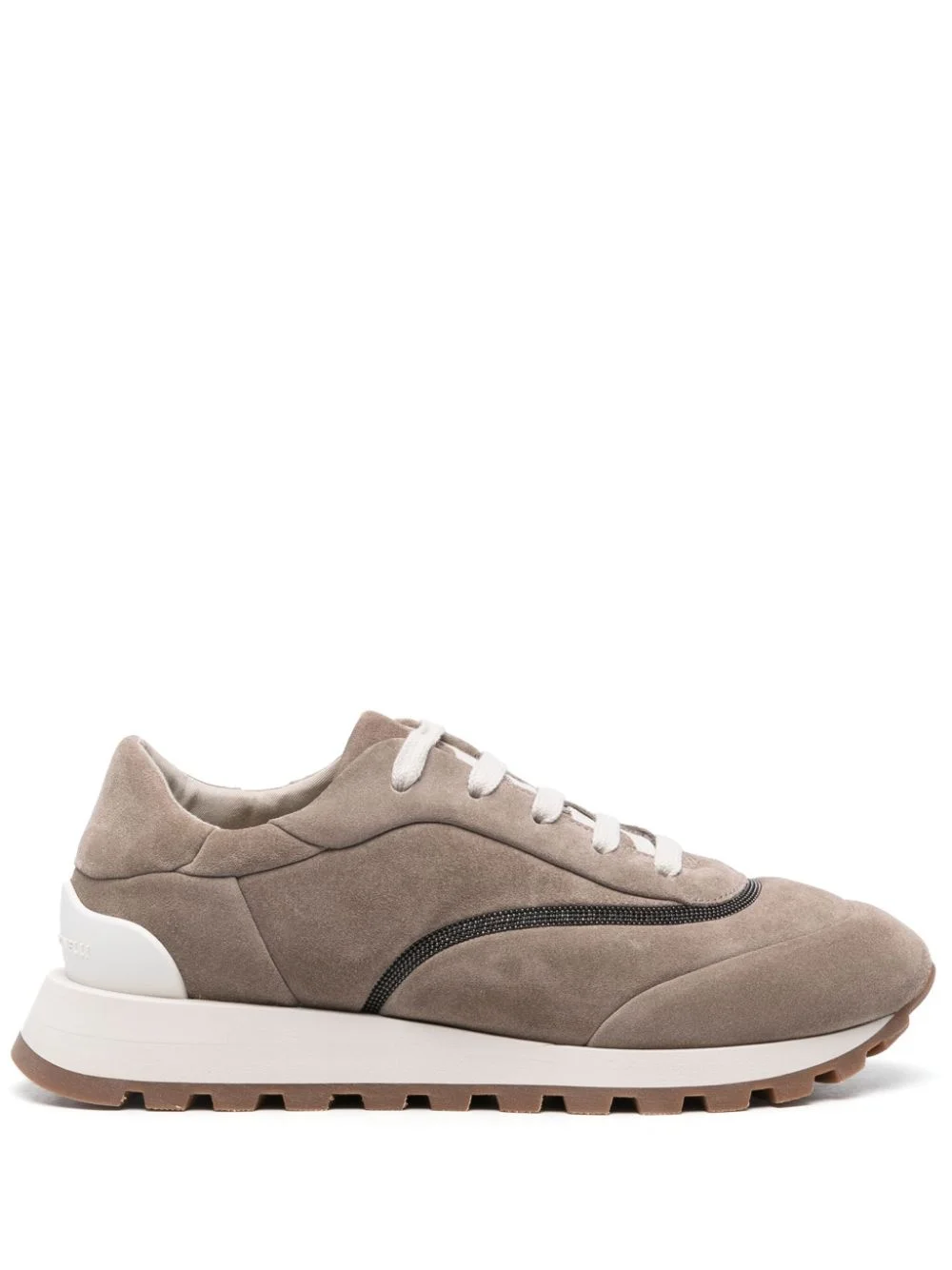 Monili-chain sneakers Highlights - Beige - Suede - Round toe - Signature monili chain detail - Branded heel counter - Branded insole - Full lining - Rubber tread sole - Front lace-up fastening Made in Italy Composition Suede 100% SIZE & FIT Measurement HEEL 1.18 in(3 cm) Sole height 0.7 in(1.8 cm)
