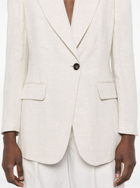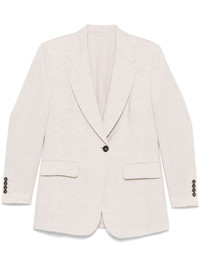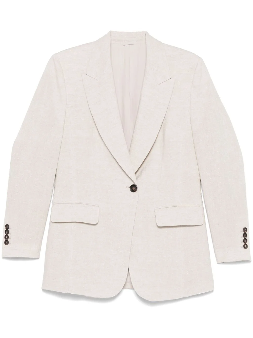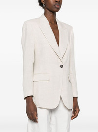 lurex blazer Highlights - Light beige - Front button fastening - Shoulder pads Made in Italy Composition Outer: Linen/Flax 97%, Polyester 2%, Polyamide 1% Lining: Acetate 74%, Silk 26% SIZE & FIT Model measurements Height 5 ft 11 in(1.8 m) Bust/Chest 32.67 in(83 cm) Hips 36.22 in(92 cm) Waist 24.4 in(62 cm) FittingInformation Designed for a slim fit that sits just away from the body offering a close yet comfortable fit The internal shoulder pads offer a structured shape Made from a midweight non-stretch fabric