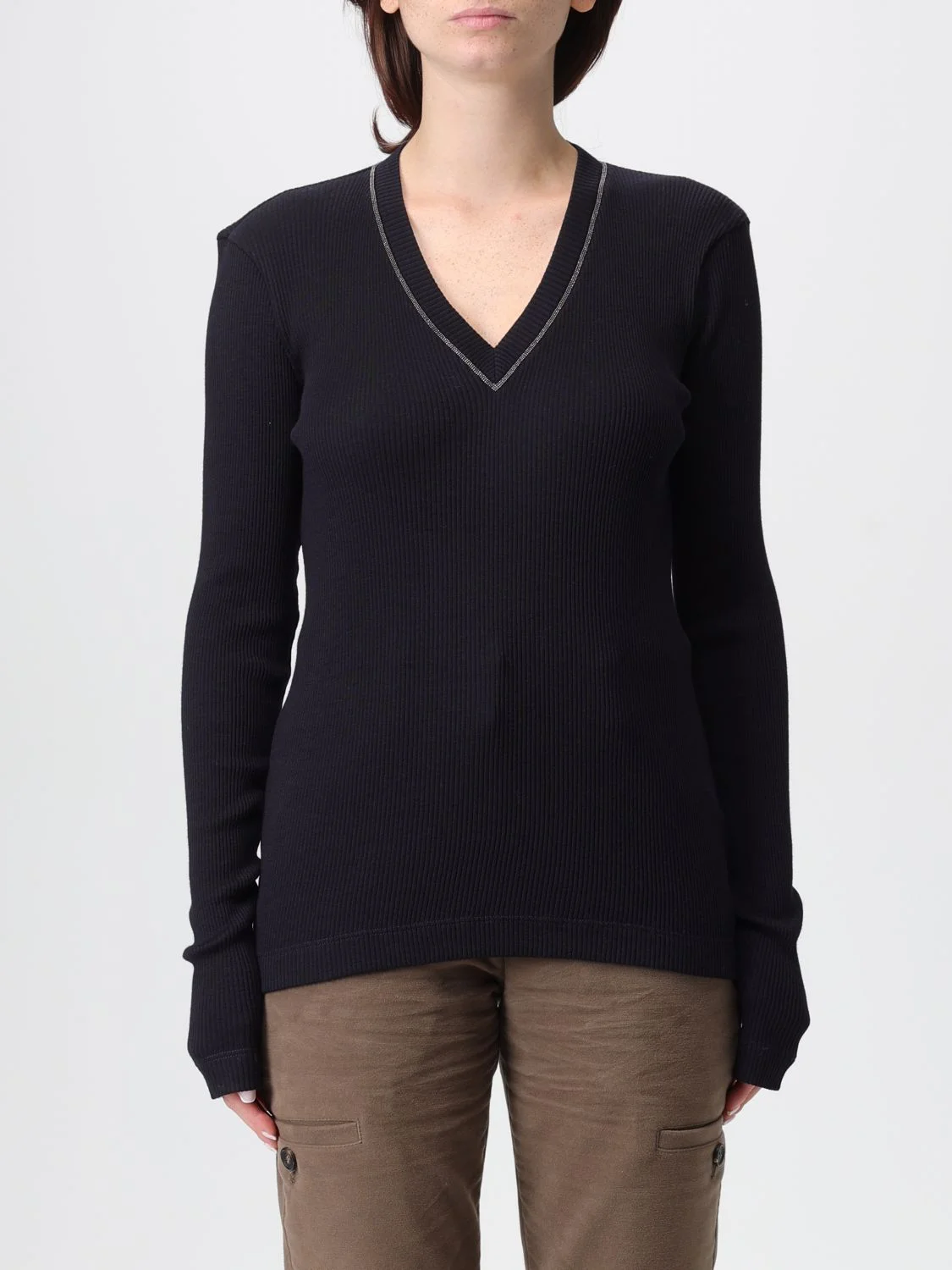 DESCRIPTION - Style: Basic, Casual - Neckline: V neckline - Shoulders: Padded - Sleeves: Long - Cuffs: Ribbed - Bottom: With ribbed edges, With straight hemline - Occasion: Morning - Model: Ribbed - Materials: Wool - Pattern: Plain-colored DETAILS AND CARE Composition not available SIZE AND FIT Sizes not available Size and fit Slim fit Designer code: MD998VB702 C1042 Giglio Code: H31732 Designer: Brunello Cucinelli Collection: Brunello Cucinelli Woman Category: Clothing Brunello Cucinelli