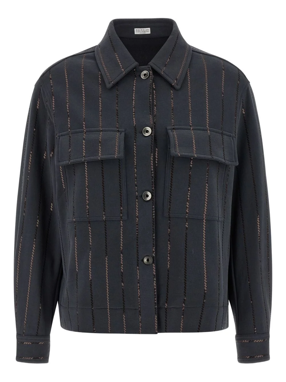 sequin-striped shirt Highlights - Blue - Cotton fleece - Sequin stripes - Button front - Patch pockets - Long sleeves - Cuffs Made in Italy Composition Cotton 100% Washing instructions Read Manufacturer Guidelines