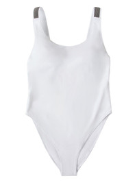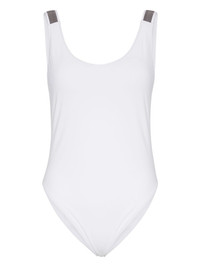 Monili chain-embellished swimsuit Highlights - White - Scoop neck - Wide shoulder straps - Low back - Be mindful to try on swimwear over your own garments. Made in Italy Composition Nylon 68%, Elastane 32%