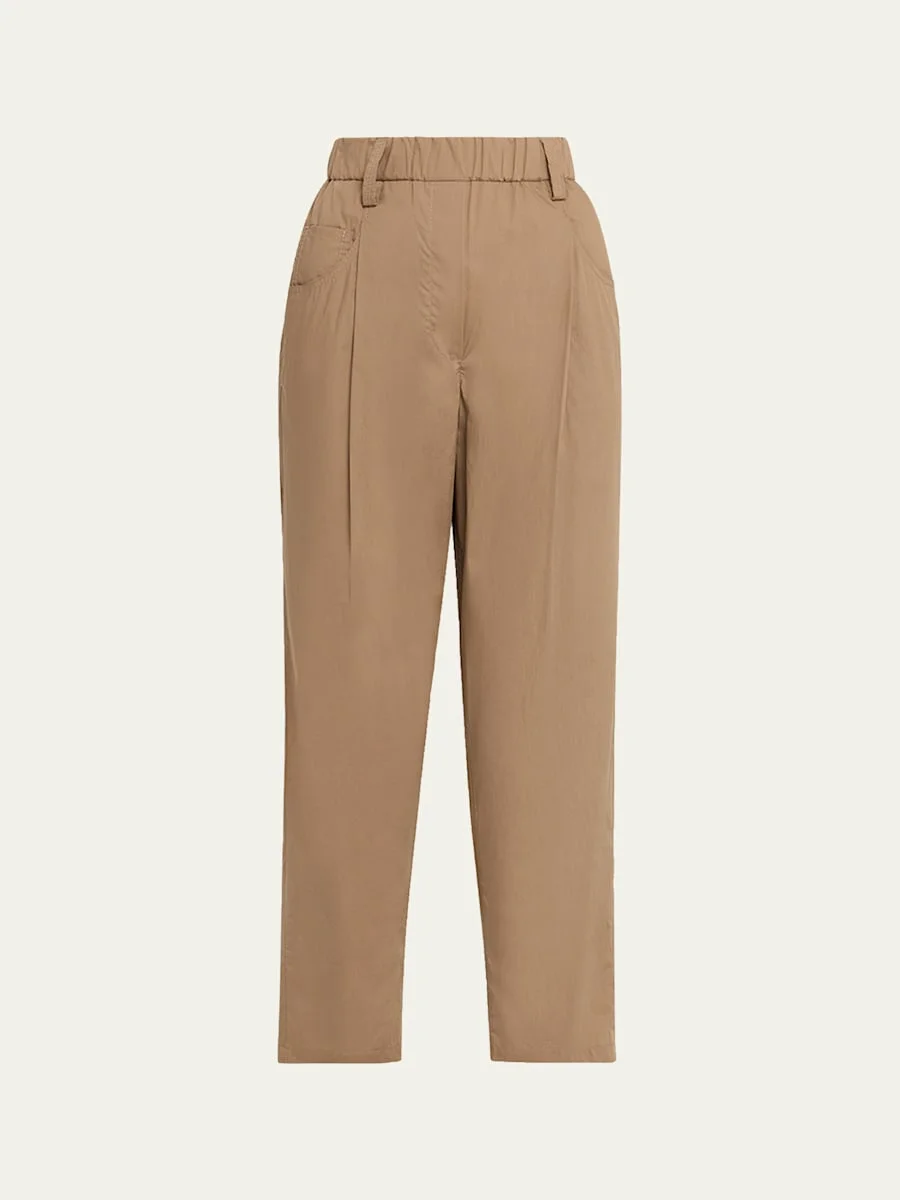 These Brunello Cucinelli pants are cut from lightweight cotton poplin, finished with front pleats and tonal topstitching Midrise sits high on the hips Elasticized waistband Pleated front Fivepocket style Rolled cuffs Cropped at the ankle Tapered legs Pullon style Cotton Lining: Polyester/acetate/cupro Dry clean Made in Italy
