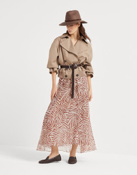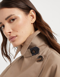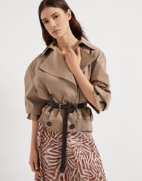 Timeless elegance and contemporary lines define the style of this new cotton panama Crop caban jacket. Characterized by a double-breasted closure and a straight silhouette, the garment features stylish yet functional details that enrich the design’s versatile feel. The shiny monili embroidery completes the caban jacket with a radiant sparkle in true Brunello Cucinelli style. MATERIALS The techno cotton gabardine is equipped with a thin membrane that ensures the right protection from the elements without compromising lightness. The water-resistant finish gives the fabric greater resistance. DETAILS Horn button closure Unlined Lapel collar Removable neck strap Hand pockets Adjustable button cuffs Nickel-free monili decoration 67% COTTON, 20% NYLON, 13% POLYURETHANE