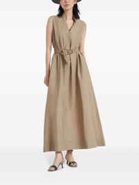 belted sleeveless maxi dress Brunello Cucinelli combines premium craftsmanship with signature detailing in this beige dress, which is fitted with a waist-cinching belt. It's made in Italy from cotton-rich poplin and dotted with Monili beads at the band collar. Highlights - Almond beige - Cotton blend - V-neck - Sleeveless - Detachable belt - Belt loops - Ankle-length - Straight hem Made in Italy Composition Cotton 75%, Polyamide 25% SIZE & FIT Measurement HIPS 50.39 in(128 cm) LENGTH 55.9 in(142 cm) WAIST 45.66 in(116 cm) Washing instructions Read Manufacturer Guidelines